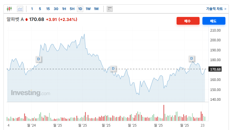 그런데도 자꾸만 소유욕을 자극하는 주식, 바로 알파벳A(GOOGL).